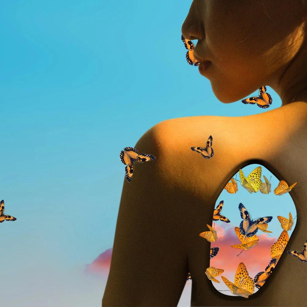 Gros plan flou d'un visage féminin, mettant en évidence des lèvres rouges. Effet artistique et déformé.